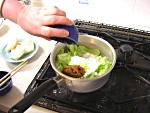 2.鍋にだし200ccくらい入れて火を点け、沸騰したら白菜を入れる。